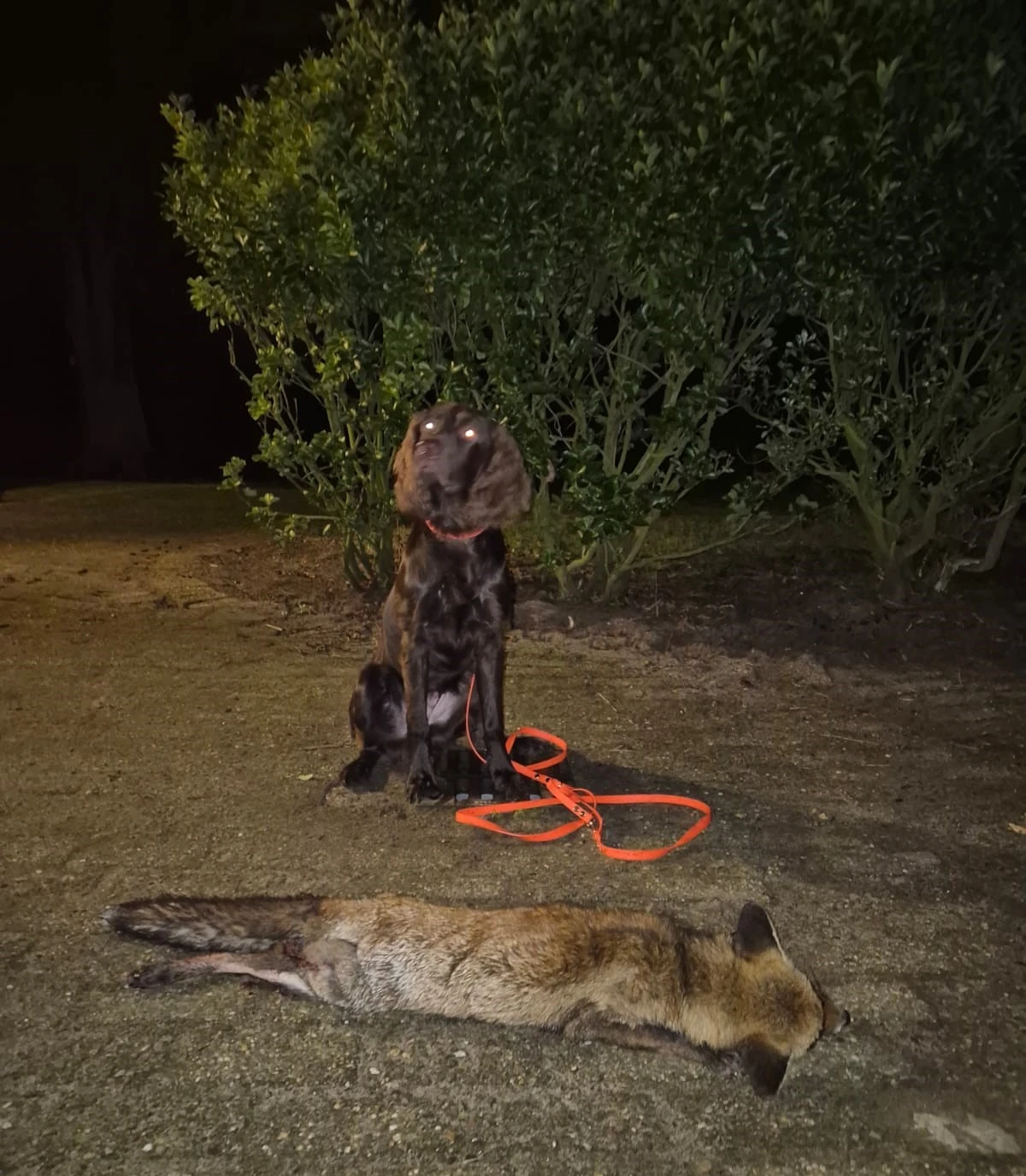 Dat bleek al een paar weken geleden toen S. niet alleen een mooie rekel schoot, maar die ook kon gebruiken voor een geslaagde ‘nazoek’ van zijn jonge hond. Hij wil hem allround trainen om er straks een breed inzetbare en bruikbare jachthond aan te hebben. Het lijkt erop dat dat er in zit, want na eerdere nazoeken op reewild kon hij ook deze roodrok vinden.